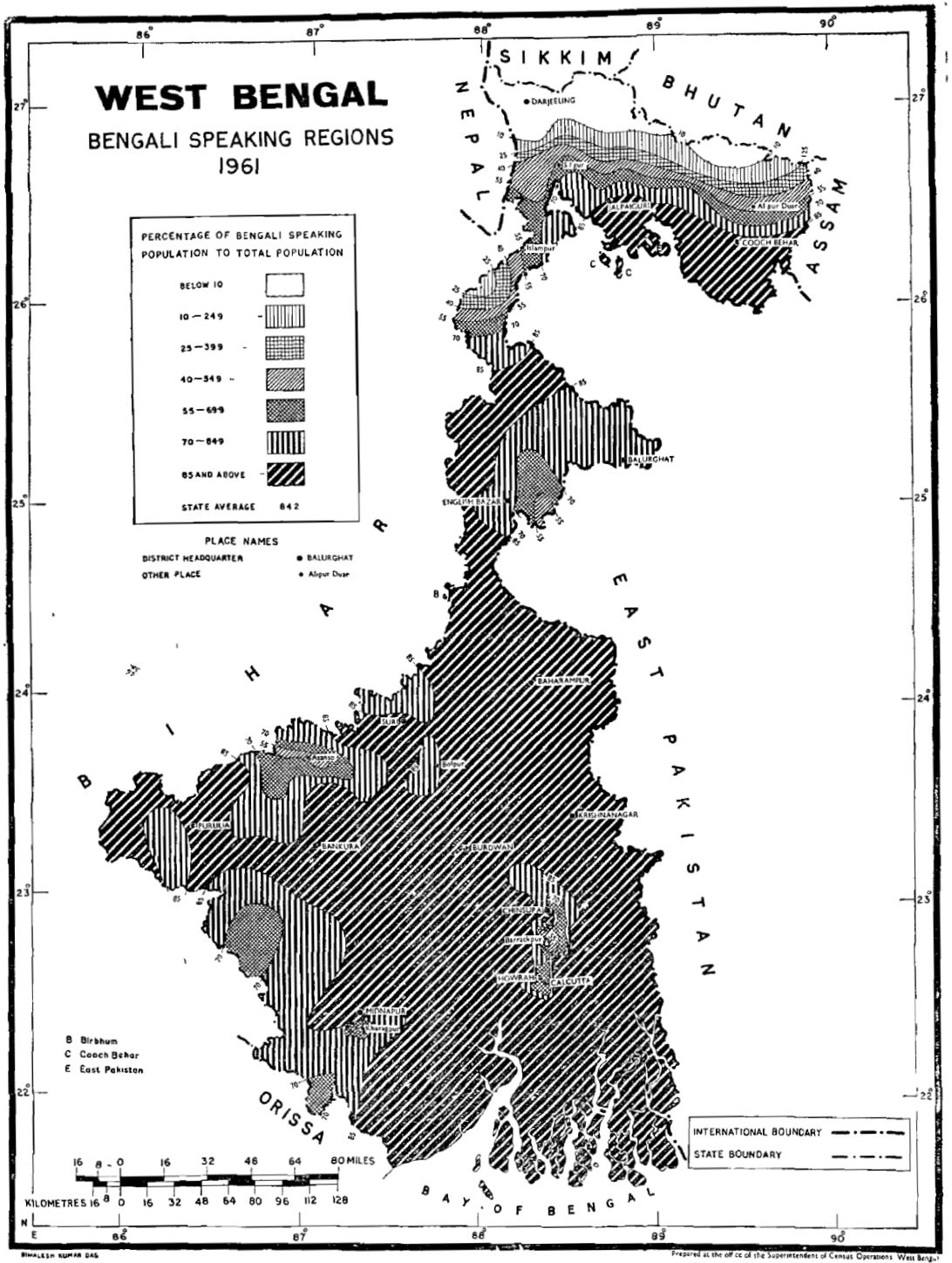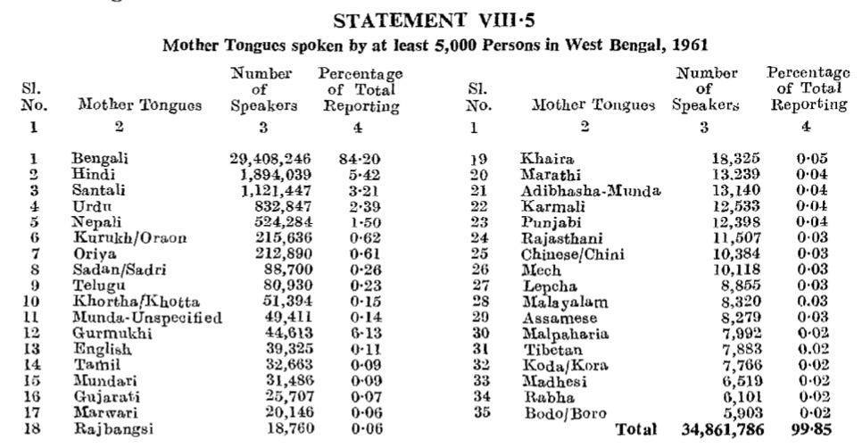 The Map shows the prevalence of Bangla across the state and the lack of it as we approach the North. The Official Language Act of 1961 made sense as per linguistic trends of the time.